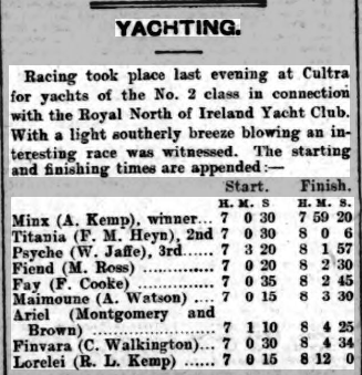 One of the earliest Fairy races. Belfast Telegraph, 19 June 1902