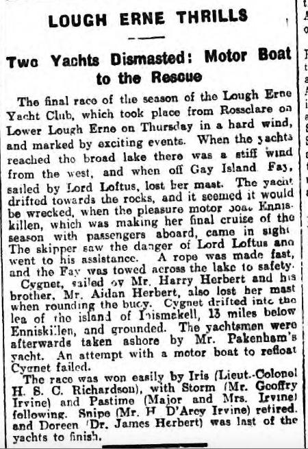 The last known mention of ‘Fay’ ever sailing. Belfast News-Letter, 03 October 1931