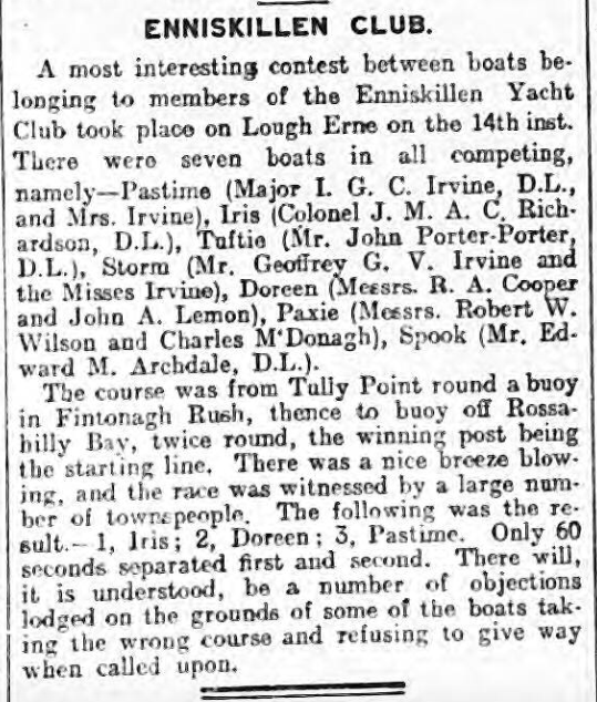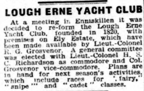 The Cooper family were instrumental in helping to reform the LEYC by gathering up the boats of the Fairy Class. Belfast News-Letter, 24 October 1949