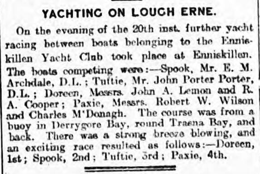 Early Fairy race with ‘Maeve’ still named as ‘Spook.’ Belfast News-Letter, 22 June 1906