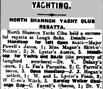 | 1920 | Possible mention in Sligo newspapers as sailing on the North Shannon |