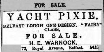‘Pixie’ was originally commisoned as Silvana, before being renamed in 1904. The boat occupied the sail No.8, before being given No.5 in 1912. Following the loss of Iolanthe in a heavy gale and the arrival of Psyche from the Enniskillen Yacht Club, Pixie took sail No.5, while Psyche took Pixie’s original.